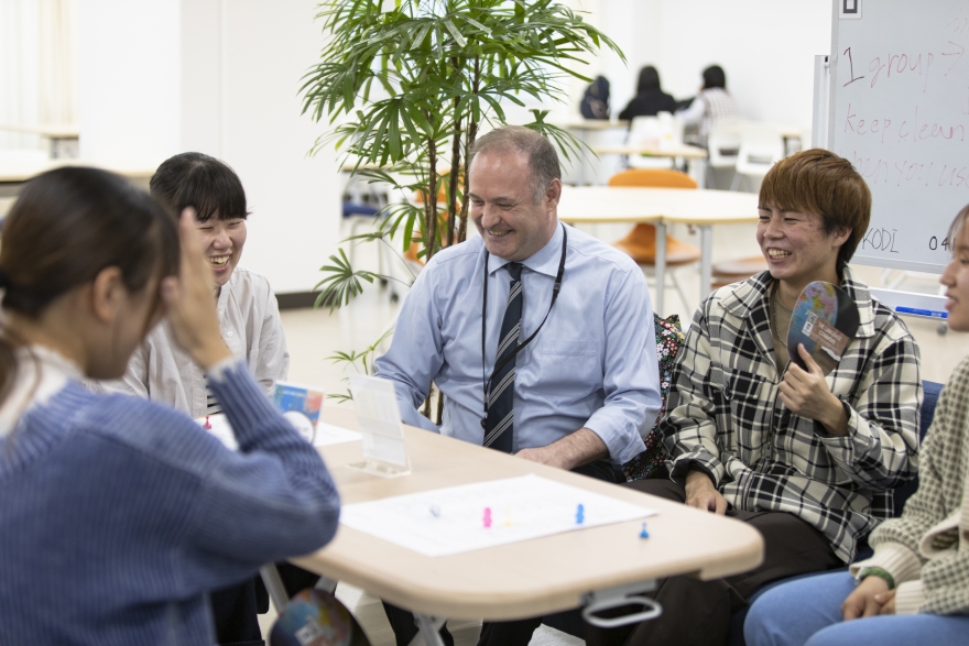 - ・英語学習スペース「ランゲージコモンズ」を整備しており、学生がスタッフとして、昼休みを活用した英会話活動である「ランチタイムチャット」をはじめとした各種活動を全て英語で実施している。