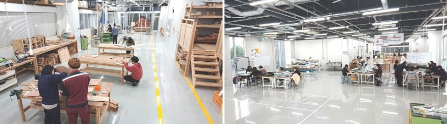 総合大学の特徴を活かした文理融合型の新しい創造活動の場として、2018(H30)年にものづくりセンターを設置しました。広いスペースに3Dプリンター、レーザー加工機、NC工作機器、各種工具、素材、パーツを取り揃えた充実した施設となっています。コロナ禍においては、社会全体で不足していたフェイスシールドやパーティションを製作し、県内の400以上の医療機関あるいは聴覚特別支援学校等へ無償提供するなど、社会貢献活動にも取り組んできました。 同センターは、文系・理系あるいは学生・教職員の区別なく利用できる多様性に満ちた交流の場となっており、木工、金属加工、電気・電子回路、プログラミングを専門とする専任の技術職員の細かな指導を誰でも受けることができるため、初心者でも安心して利用できます。また、同センターは、ものづくりの基本知識、技術講習、安全に関する講習会を頻繁に主催し、いつも盛況です。さらに、クラフトワーク、ロボット、プログラミング、3Dデザイン等をテーマとした全学規模の学生プロジェクト活動の企画・支援のほか、入門用として趣味の講座(アクセサリー製作、レザークラフト、服飾デザイン)の開催や研究用の試験体の加工や装置の開発・製作の補助など幅広く対応しています。 そのほか、文理融合型の課題解決型学習教育に適した施設として、ものづくりの実体験に基づいた高い知識と技術力を備えた人材や異分野の学生との協働的創作活動を通じて、発想力、デザイン力、構想力および実践力を有する人材の育成、会社オーナー等の起業経験者を講師に迎えた講演会や製品開発実習を通じたアントレプレナーシップ教育にも力をいれています。また、一部の文系学部では、同センターを利用した専門教育科目を設置するなど、活用の幅が広がっています。 総合大学において「ものづくり」を体験できるという本学の特徴を活かし、福岡大学は、教育の質的転換と新しい教育システムの開発でチャレンジを続けています。今後は、「ものづくり」の範疇を美術や音楽等のアートワークまで拡張し、新時代に合った柔軟でバランスのとれた感性豊かな学生を育てる全人教育の可能性を探っていきます。