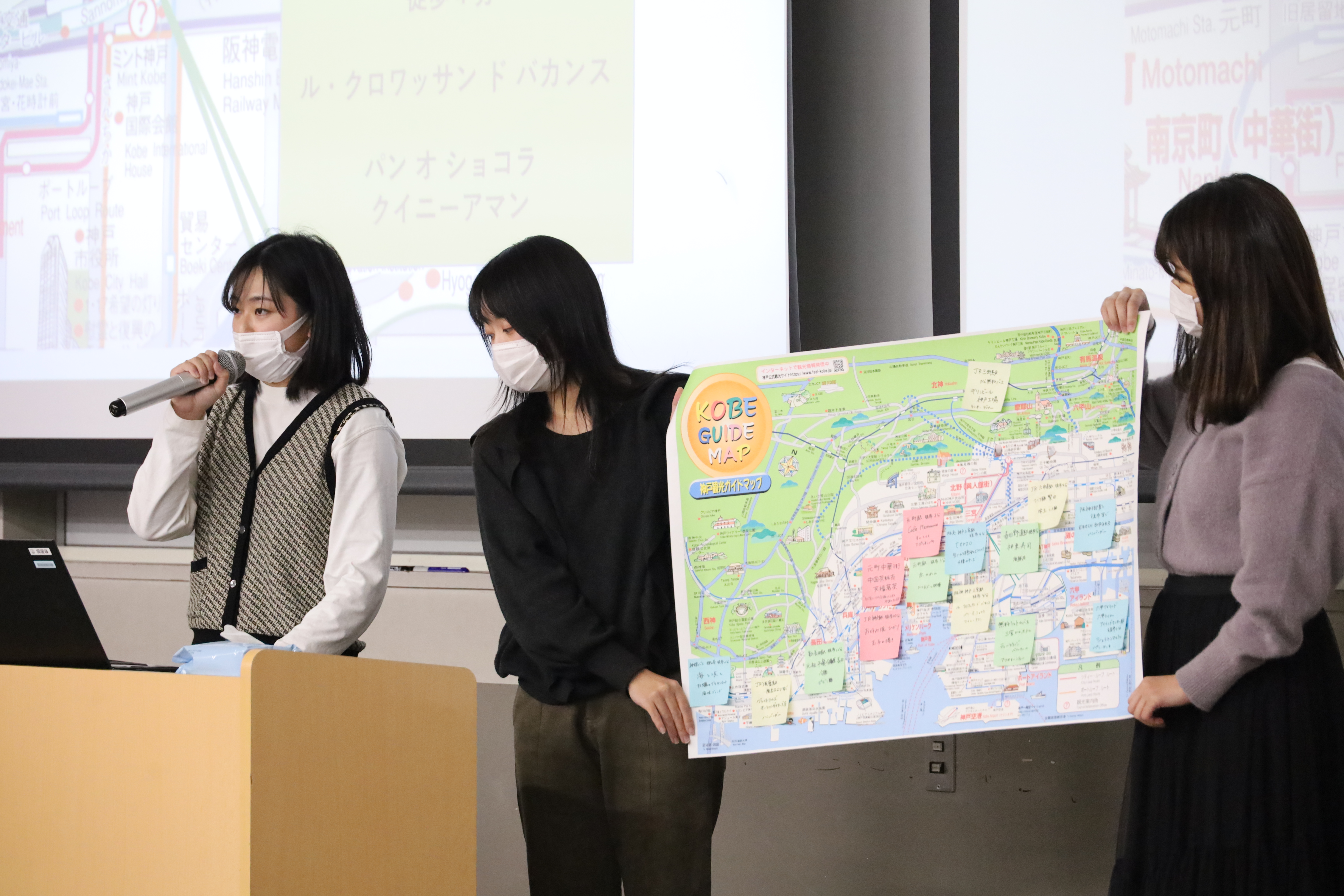 大学の理念を踏まえた社会連携・社会貢献に関する方針を定め、「社会連携推進委員会」が中心となり「社会共創活動」を推進している。特に、イノベーションをもたらす人材の育成を目的として企業との連携で商品開発やアイデアを募るプログラムである「神戸イノベーターズ・グランプリ(I-1グランプリ)」を実施するほか、地元の地方新聞社や兵庫県などと連携した「Mラボ 課題解決ラボ」、兵庫県印刷組合などと連携した「産学連携プロジェクト」など、産業界、行政機関、地域などから大学、学部、教員に寄せられるさまざまな問題解決の要請を受け、これを「社会共創活動」の一環として学生の教育に活用していることは、「真の豊かな社会の実現に貢献できる人材育成」という大学の理念の実現に資する取り組みとして評価できる。