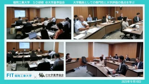 当日は、「大学職員としての専門性と大学評価の視点を学ぶ」と題し、認証評価制度や大学評価、大学基準について説明を行い、質疑応答では内部質保証の重要性や第三者評価の意義について活発な議論が交わされました。