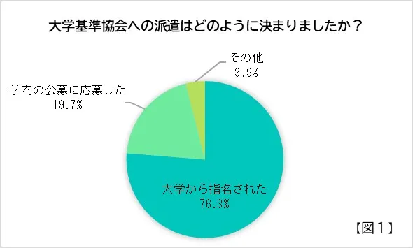 まずは、本協会への派遣が決まった経緯についてお聞きしました。この質問に対しては、76.3%の方が「大学から指名された」と回答されました(図1)。一方、「学内の公募に応募した」という方が19.7%であったほか、「本人の希望で採用された」等の回答をされた方もいました。やはり、組織の人材育成計画のなかで本制度が活用されるケースが多いようですが、本制度に興味を抱き、自らの意志で希望される方も少なからずいらっしゃるようです。