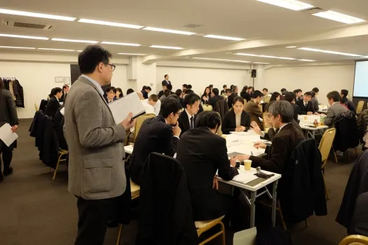 続いて、グループワークを行い、講演や事例報告の内容を振り返りながら、グループごとに「内部質保証に有効な学習成果の測定」について情報交換・意見交換をしていただきました。