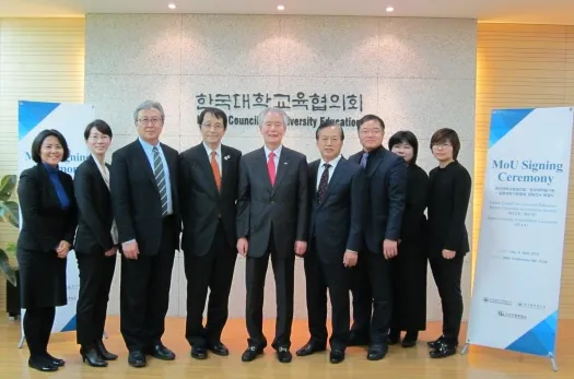 2015年12月9日、本協会は、韓国の高等教育質保証等に関する活動を行う機関である大学教育協議会(KCUE)及び大学評価院(KUAI)と協力協定(MoU)を締結いたしました。