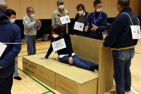 2020年には、「関大防災Day」において2019年度に策定した「大規模地震における避難者の避難所運営ガイドライン」の実効性の検証を目的に、コロナ禍において大規模地震が発生した想定で、一時避難施設の開設及び避難者対応訓練を本学構成員の 他、近隣住民らの参加のもと実施した。