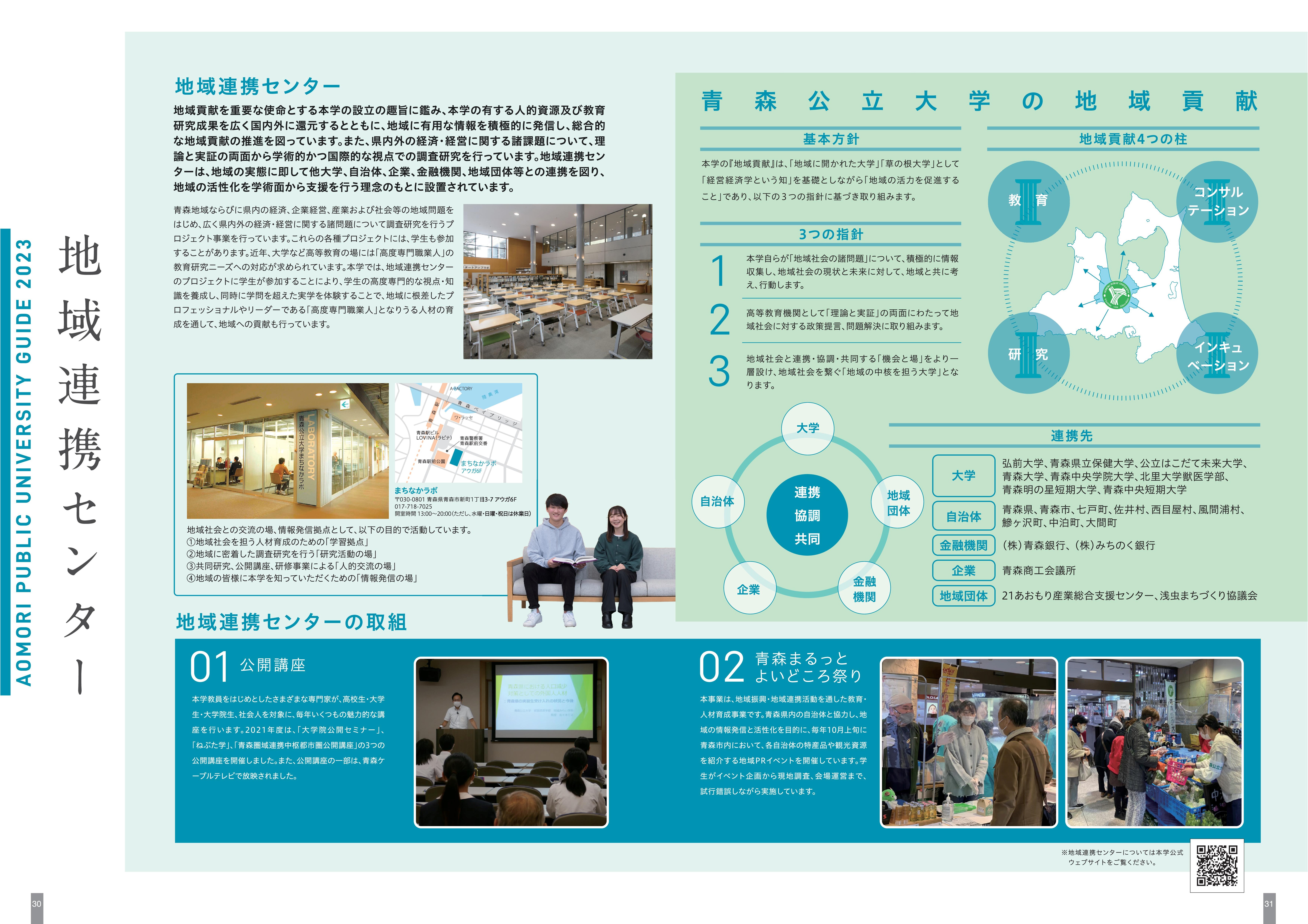 大学による継続的な社会貢献や地域みらい学科の学生によるフィールドリサーチ等から自治体との連携が進み、佐井村においては、各家庭にニュース・警報・お知らせの配信、安否確認可能な機能等のある情報端末機器を設置し、学生によるその後の利用状況ヒアリング調査や訪問調査等を行っている。他の自治体からの大学側へ連携協定の申込みも増え、各自治体との双方向的な連携協定が長期にわたって行われている。また、連携協定を締結している県内自治体へ学生が赴き、地域住民とともに調査・企画立案した特産品を集めた物産品店を通じて、各地域のPRを図る「まるっとよいどころ祭り」は、現在では大学主催となり、学生が企画に参加することで大学と市民をつなぐ青森市の一大イベントに成長しており、評価できる。