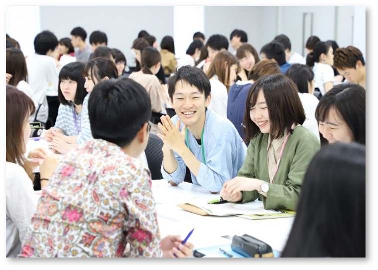 2016年から高学年アセンブリの呼び名をアセンブリⅢに変えました。2018年のアセンブリⅢには4大学から医療福祉系5学部の860名の学生が参加しました。TBLはチームのメンバー間に強いまとまりと信頼が育まれる(写真)と言われており、学科混成のチームで協力しながら授業を進めます。また、最終学年の選択制プログラムとしてアセンブリⅣトライアルを開始しました。