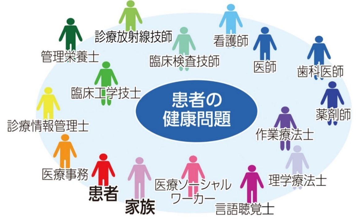 - ・チーム医療を実現するために、自大学のみならず、医療・福祉関連の大学と連携した教育を実施している。
