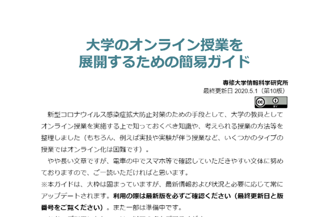 新型コロナウイルス感染症下での「オンライン授業を展開するための簡易ガイド」の公開