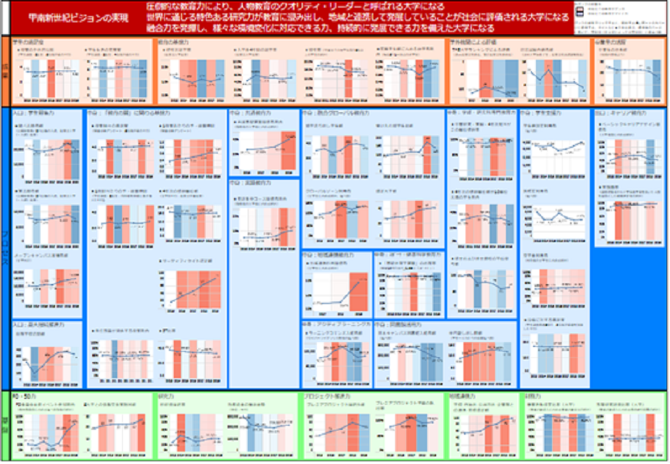 本学では、学位プログラム毎の学修度平均値を算出しIRシステム(「KONAN IR Tool」)に表示することで、教育効果の把握やカリキュラムの検証を実践するなど、学修データを活用した内部質保証活動に取り組んでいます。