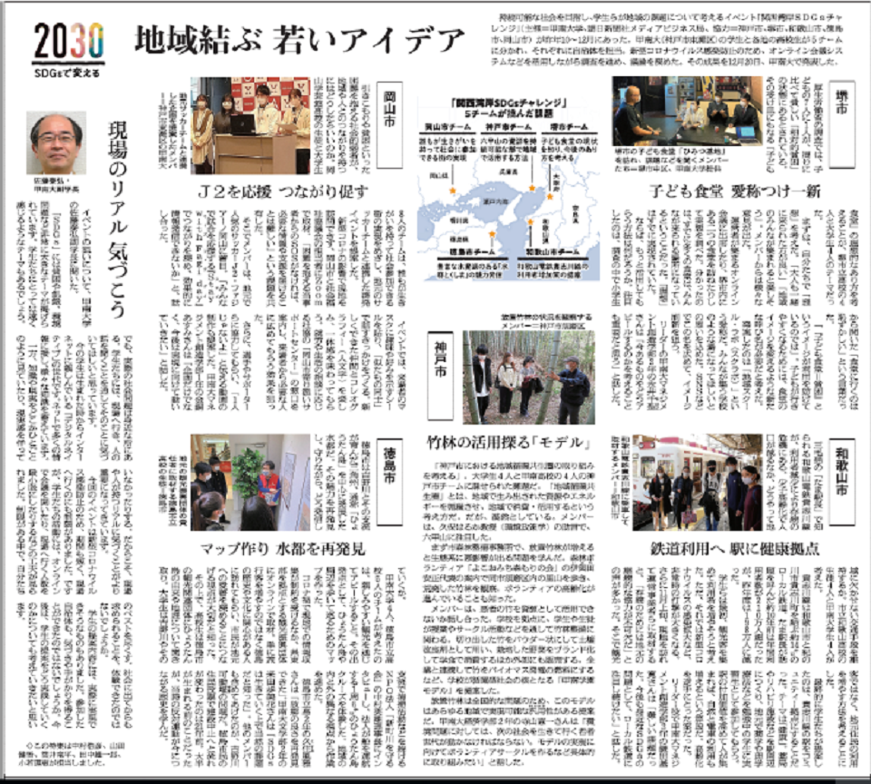甲南大学は、地方自治体、コミュニティ、企業などと連携協定を結び、学・産・官が協力しあいながらの社会貢献活動を積極的に推進する中で、学生たちが参加できる地域活動のフィールドをますます拡充しています。また、本学では地域連携プロジェクトを教育研究活動と位置付け、「加古川『知』を結ぶプロジェクト」や「関西湾岸SDGsチャレンジ」などのほか、学生が地域を通じて主体的に学ぶプロジェクトを「地域プロジェクト科目」として単位認定し、学生の積極的な地域貢献活動を支援しています。