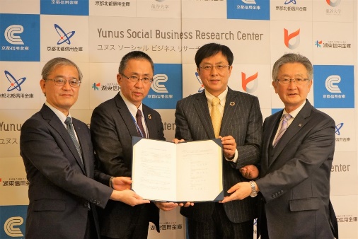 「ユヌスソーシャルビジネスリサーチセンター」では、京都・滋賀の地元金融機関との協定に基づき「ソーシャル企業認証制度」を創設し、2021年4月から社会問題の解決に取り組む中小企業を認証し可視化する取り組みに着手しています。