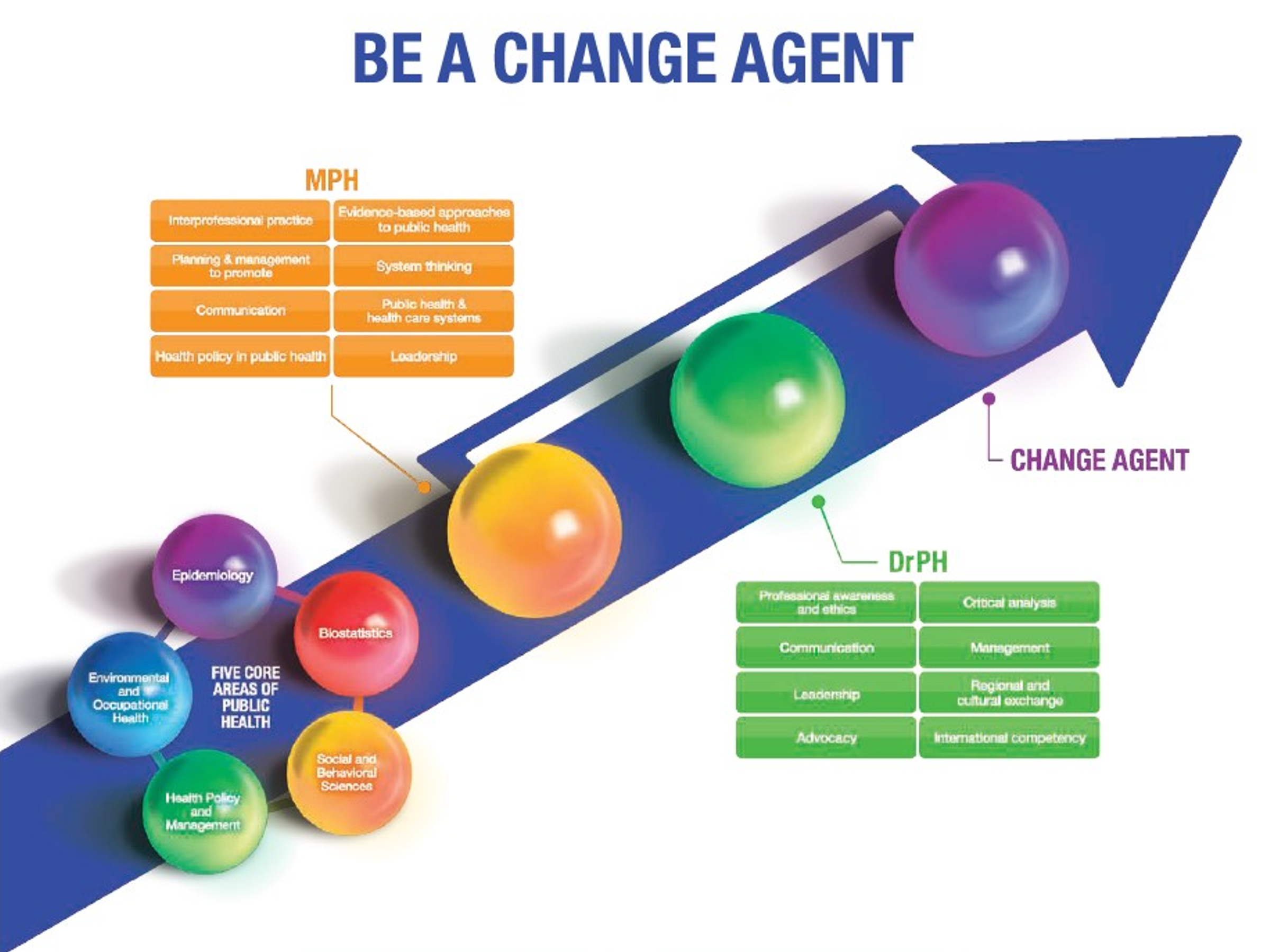 - ・公衆衛生分野で必要とされる課題解決のためリーダー「Change agent」をミッションに明示している。
